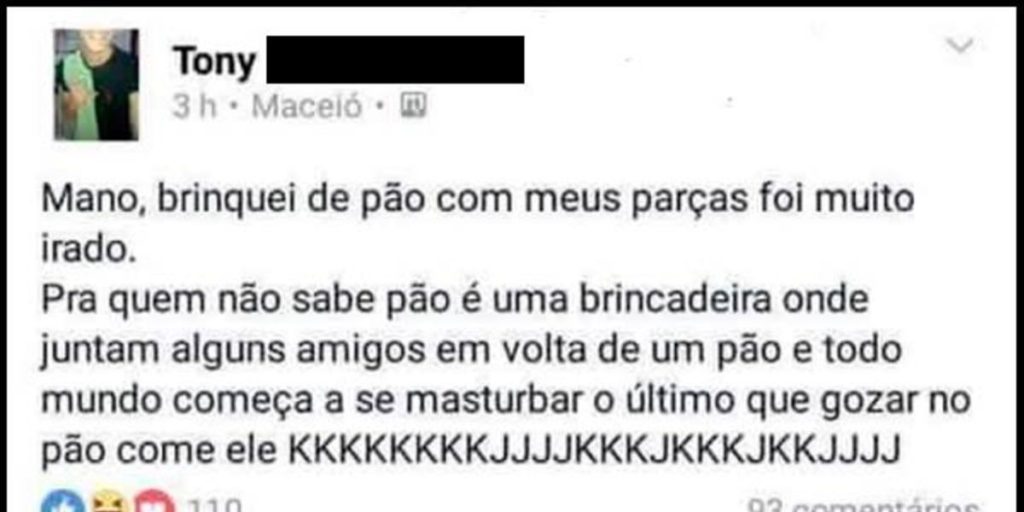 Rapaz comentando nas redes sobre "brincadeira do pão" ou "jogo do pão doce".