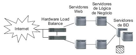 A arquitetura acima é clusterizada, especialmente no que se refere à existência de vários servidores de aplicação na rede B.