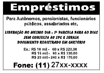 A pessoa que tomar o empréstimo de R$20.000,00 nas condições indicadas no anúncio pagará de juros, em relação à quantia solicitada, um valor correspondente a
