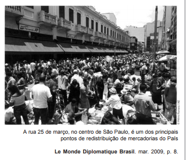 A fotografia acima registra o movimento cotidiano da economia de uma metrópole como São Paulo. O movimento registrado tem como foco uma parte da economia nacional vinculada diretamente ao setor