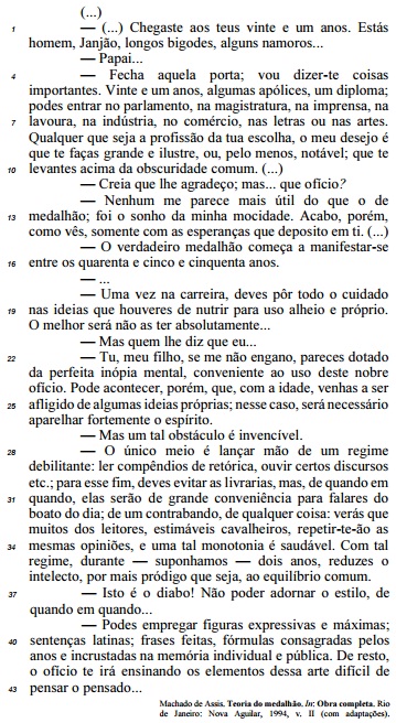 Machado de Assis. Teoria do medalhão. In: Obra completa. Rio de Janeiro: Nova Aguilar, 1994, v. II (com adaptações).