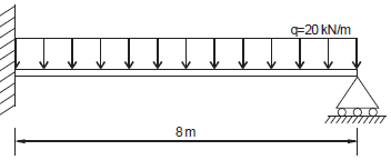 Se a viga receber uma carga uniformemente distribuída de 20 kN/m ao longo de seu comprimento, então os valores máximos dos momentos fletores que tracionam as fibras superiores e inferiores, em kNm, serão, respectivamente,