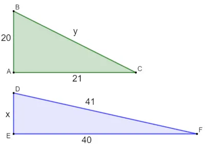 Analisando os triângulos a seguir, podemos afirmar que a soma x + y é igual a: